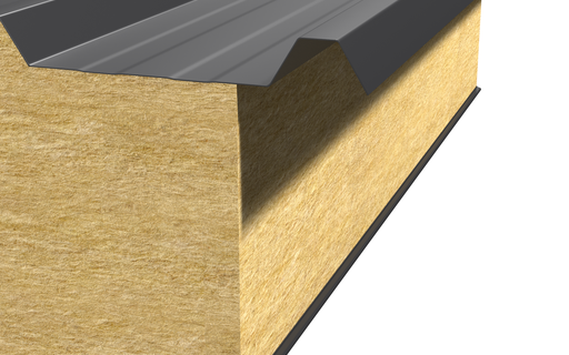 Толщина кровельных сэндвич-панелей варьируется от 50 до 300 мм, что позволяет выбрать оптимальное решение под регион эксплуатации и особенности объекта. Утеплитель из минеральной ваты обеспечивает надёжную тепло- и звукоизоляцию, а жесткие внешние оцинкованные металлические листы с антикоррозийным полимерным покрытием устойчивы к влаге, ультрафиолету и механическим повреждениям. Специальный профиль верхнего листа формирует дополнительное ребро жёсткости и улучшает водоотвод, препятствуя застою осадков на крыше.